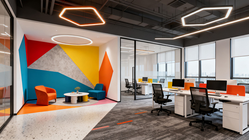 吊頂與墻面地面的基礎處理則與風格定位相關。例如,礦棉板吊頂(常用辦公吊頂)約120-180元/平米,跌級造型吊頂或鋁扣板吊頂會貴30%-50%;墻面刷乳膠漆約40-60元/平米,若做木飾面、硬包或藝術涂料,單價可升至150-300元/平米;地面通鋪地磚約80-120元/平米,鋪強化復合地板約100-150元/平米,實木地板或環氧地坪則需200元/平米以上。